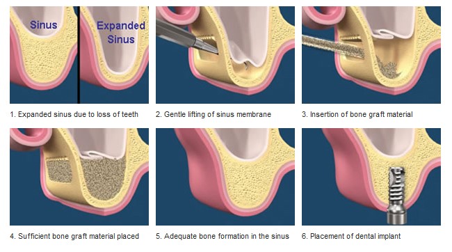 This procedure is applied when dental specialist think that it’s hard to implant dentures or bridges. Customarily, the back of the upper jaw is the most difficult spot to perform dental implants. That is the place the sinus augmentation method is performed. In this procedure, the sinus floor along with the developing bone is raised to secure dental implants appropriately.