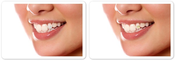 Tooth jewellery is of two kinds tooth jewels, and twinkles that are attached to the anterior healthy tooth with composite resin cement. They sparkle brightly, sprinkling brilliant rays around them and accentuating the normal whiteness of enamel and add value to a smile. They are attached to the tooth without pain, infection, drilling.